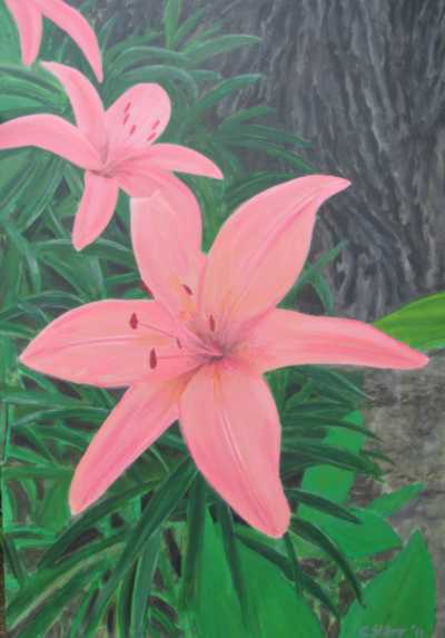 3.5x4' Canvas painting, Lillies
