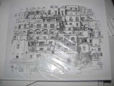 Pencil, city scene, 12x12"